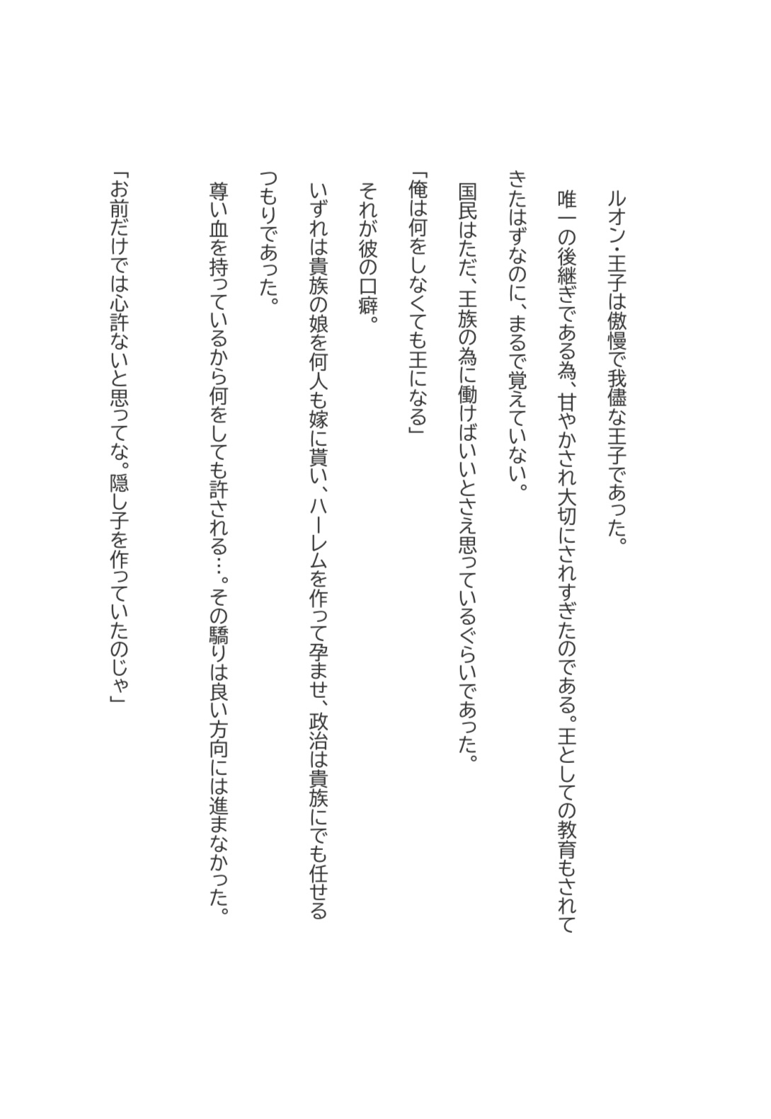 王となるべく、王子が選んだ手段は子を作ること…