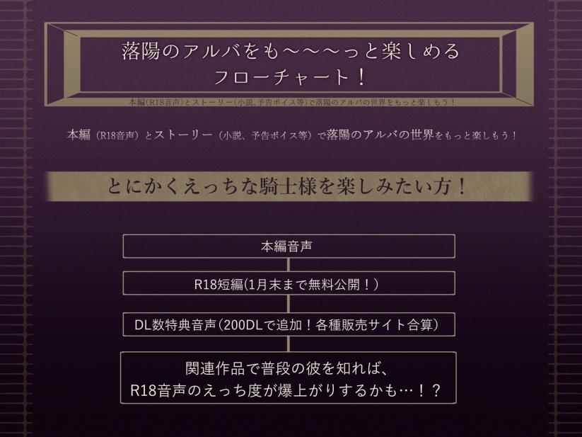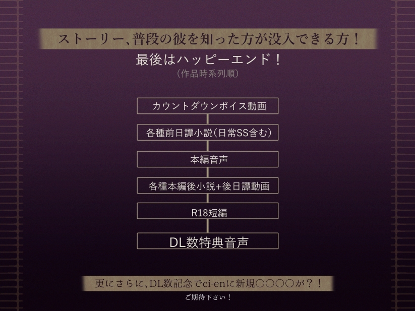 本編(R18音声)とストーリー(小説、予告ボイス等)で、