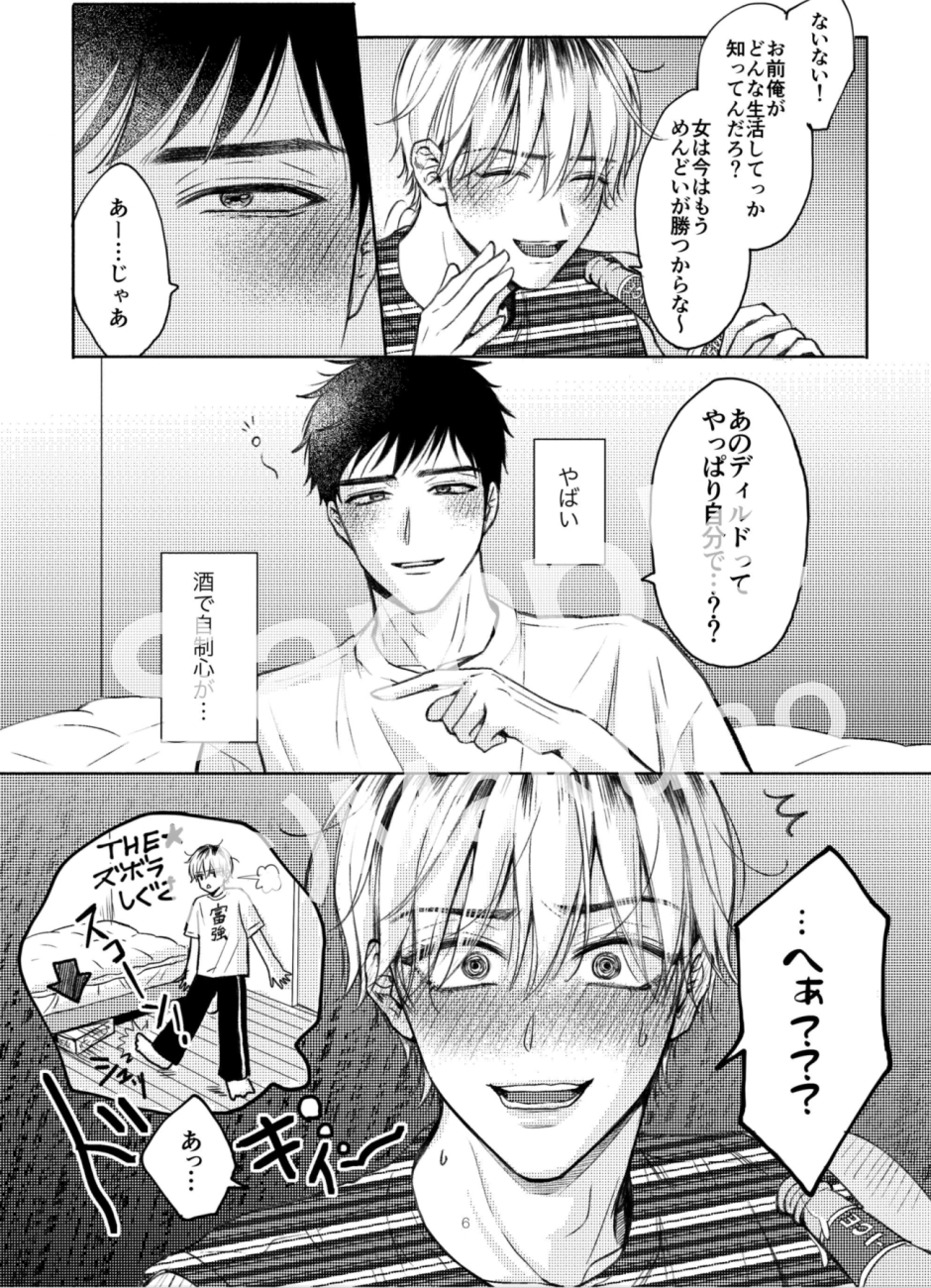 大学生の康介は、長年片思いしている先輩・ユキオの家で宅飲み中に大人の玩具を見つけてしまう