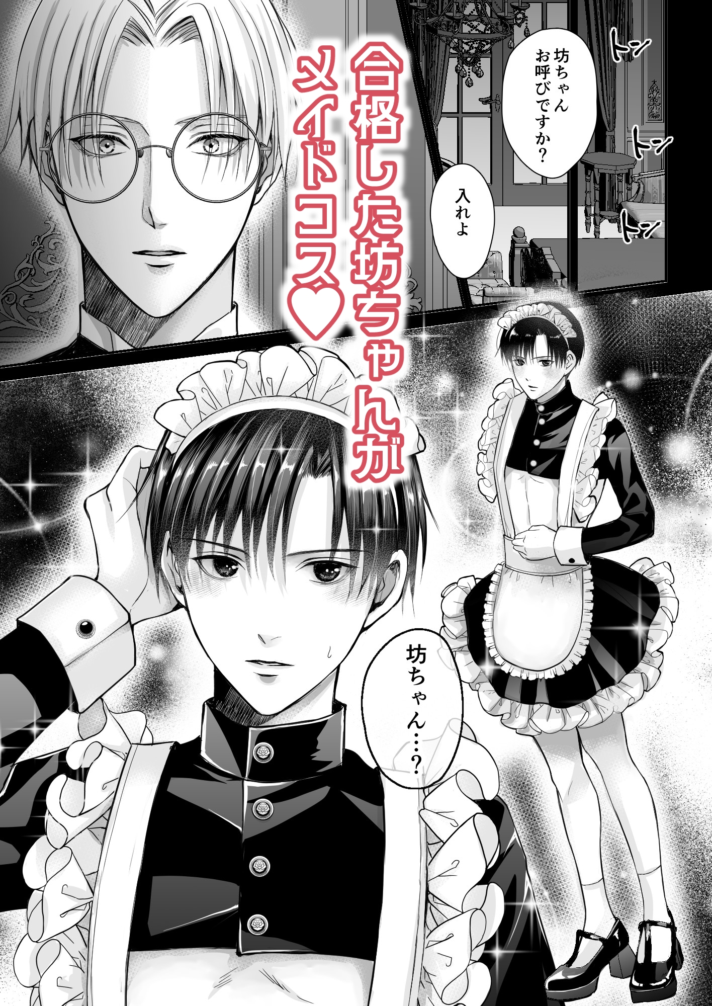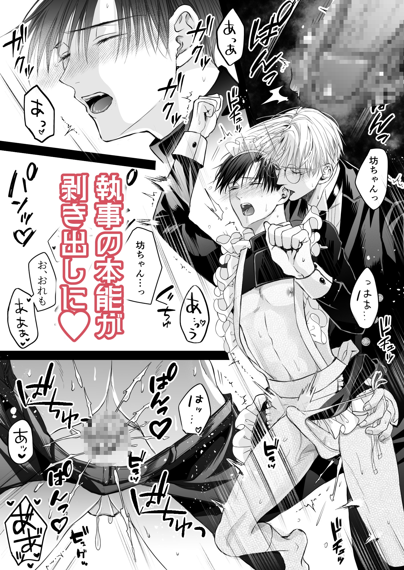 溜まりに溜まった欲求を爆発させるべく、坊ちゃんは「メイド」のコスプレで執事を誘惑することに…。