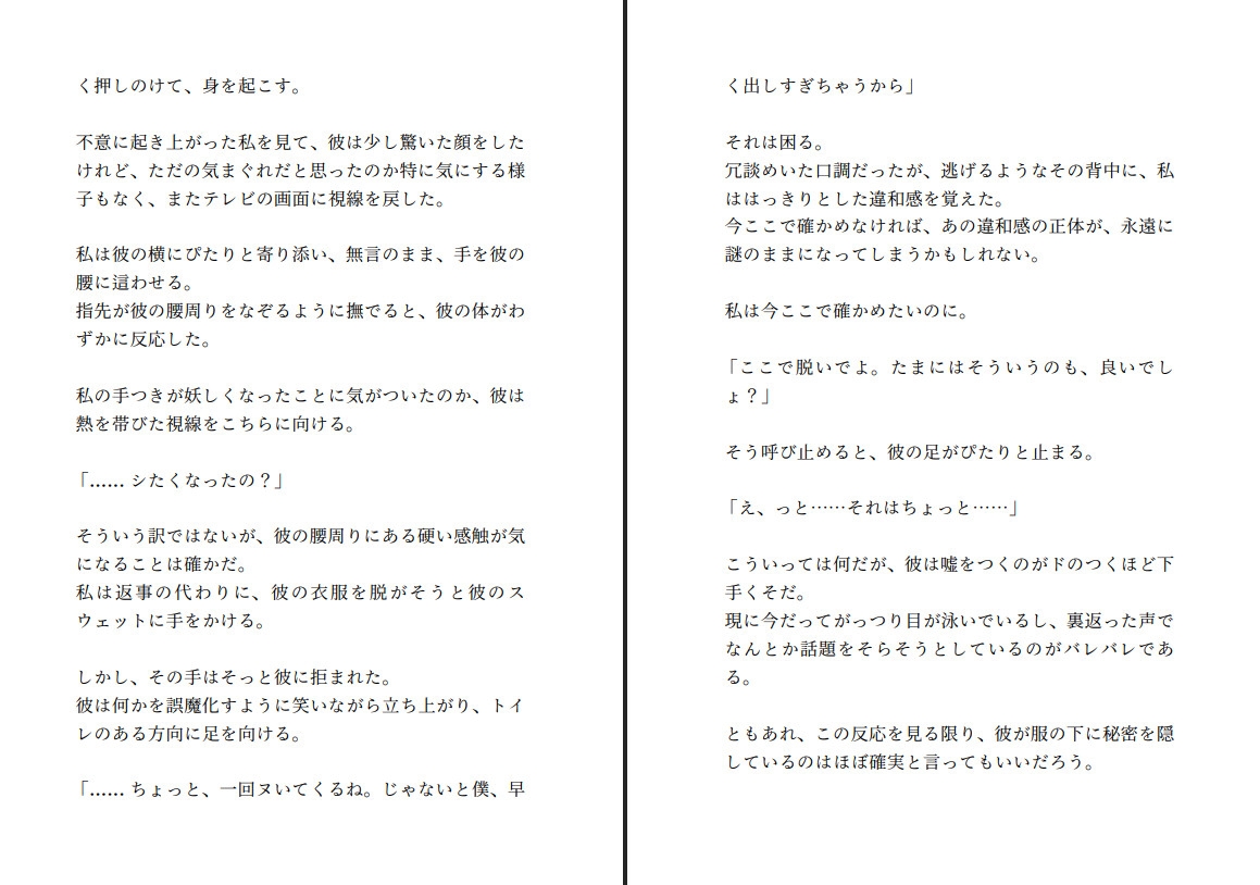 彼は、まるで興奮した犬のように、熱を帯びた荒い吐息を口元から漏らし、懺悔するように言葉を紡いでいる。