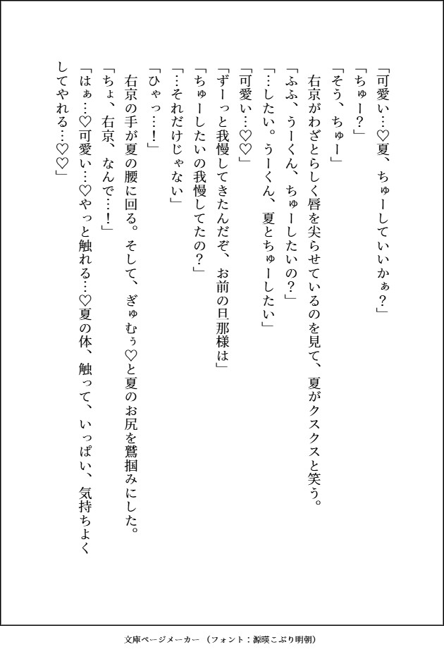 小さい頃から右京に育てられた夏がやっと成人を迎える。最近、右京に抱きしめられるだけで下腹部が疼くようになってしまった夏は、そのことに戸惑いつつも誕生日に右京とのデートを楽しんでいた。しかし、そんな日にキレイな女性が右京にアプローチしてきて…?