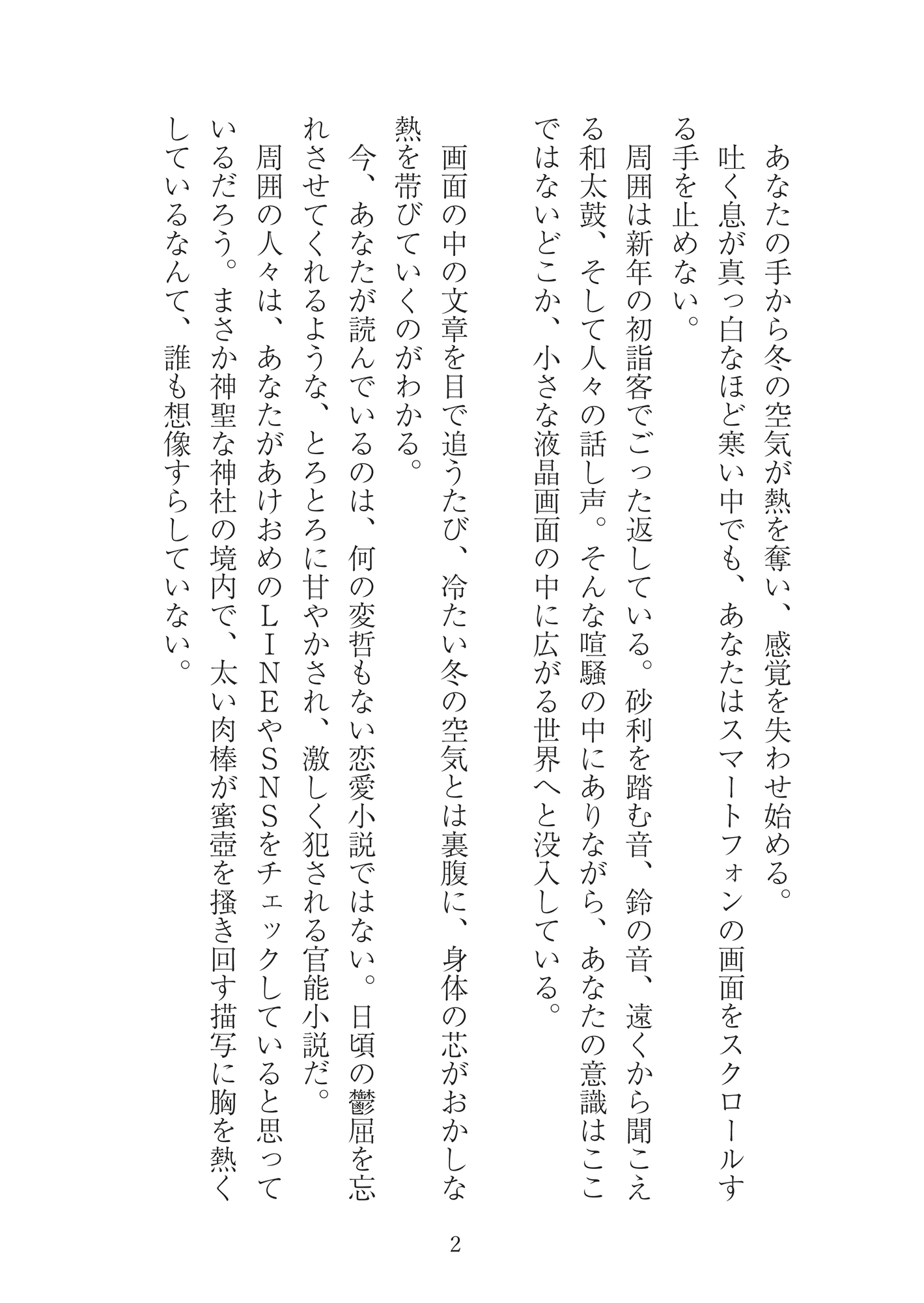 前半の初詣パートは、購入者のあなたが、実際に初詣に出かけ、その道中や帰り道で読むことを想定して執筆しています。