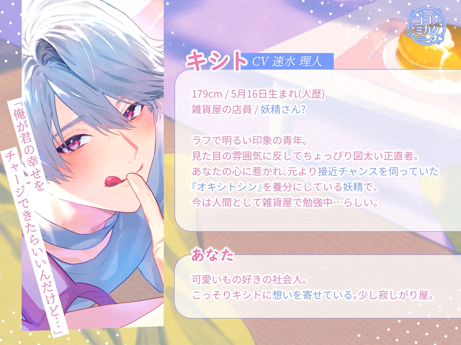 雑貨屋の店員さん”キシト”へ想いを寄せるあなたはついに彼と急接近…!と思いきや『俺、妖精なんだ』って…本当? 半信半疑ながらも愛情豊かに過ごす、キュートでピュアな成長物語…✦