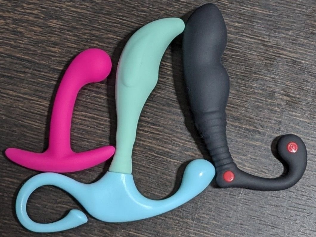 三つのアナルグッズを一つ一つアナルで飲み込んでいく!!まずはピンクのアイテムでほぐし!青色のアイテムでメスイキ!!電動エネマグラでとどめをさせ!!!!