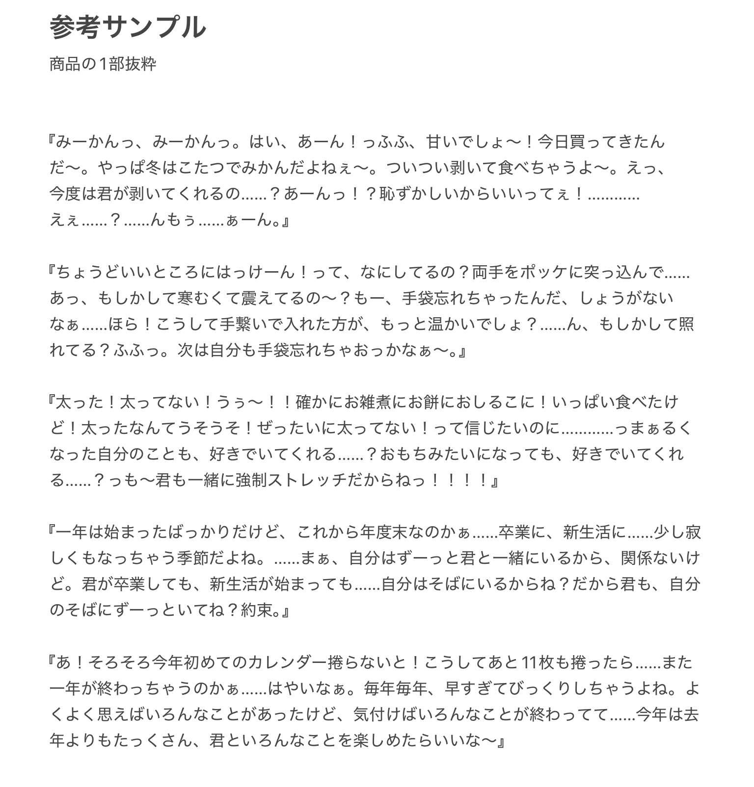 ツンデレじみたものから甘い日常会話まで、バリエーション豊かに収録。
