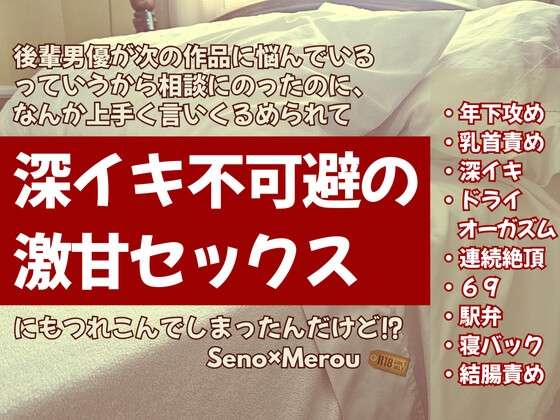 思いっきりラブシーンを盛り込んでいますので、終始やりっぱなしに近い作品になっております。ボリュームもございますので、たっぷり濃厚なエロをお楽しみください。苦手な後輩男優と、またしてもタッグを組むことに!しかしセノの魔の手は、撮影だけでは終わらずに!?