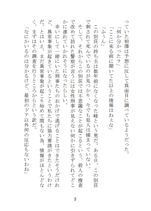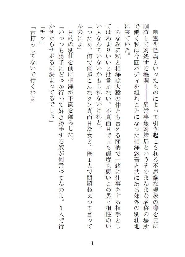 「別荘で起きた異常事象の調査で霊に体を狙われた私を救ったのは犬猿の仲である同僚だった」のFANZA価格データはありません