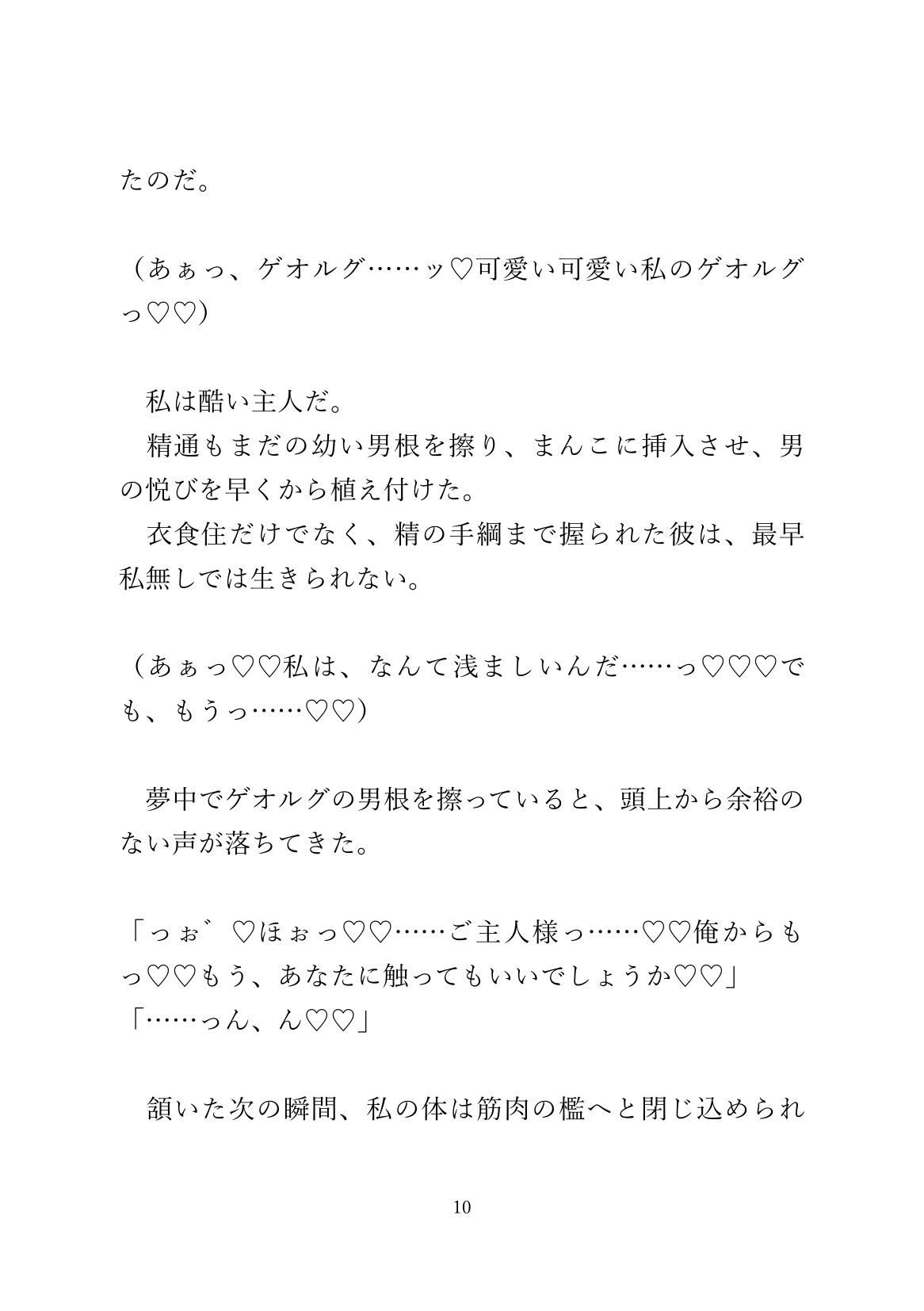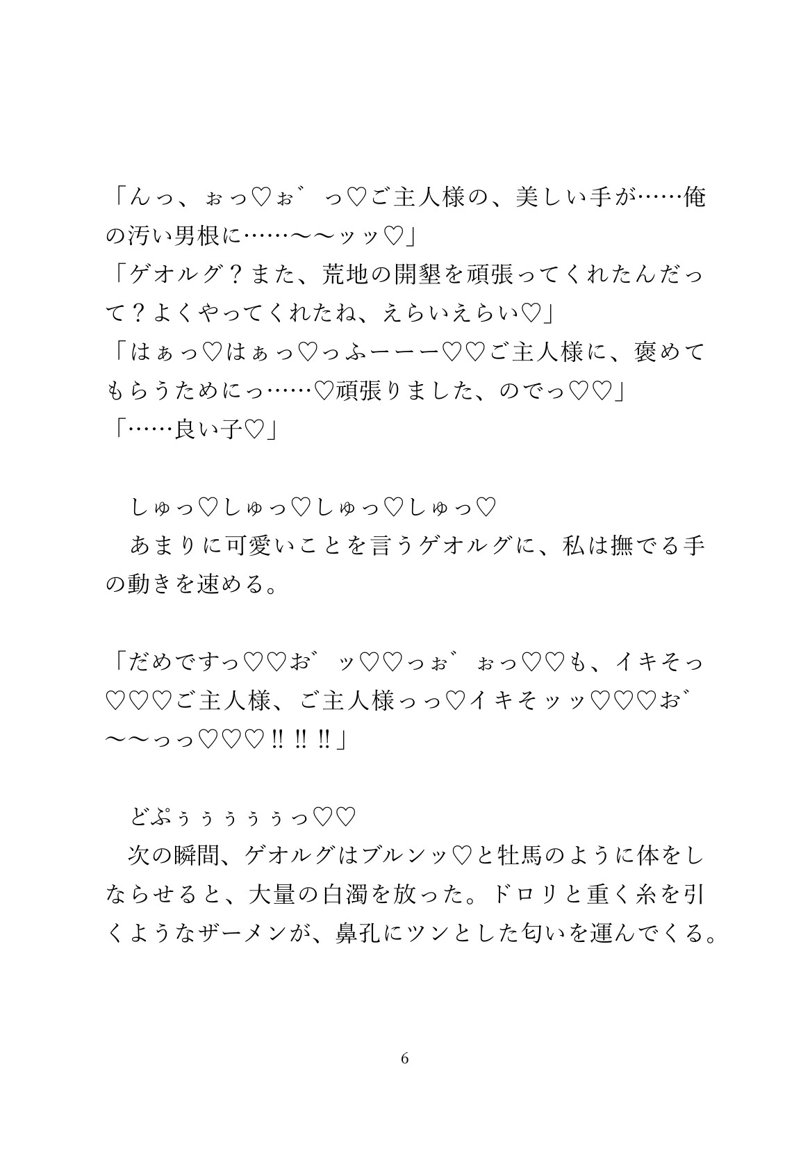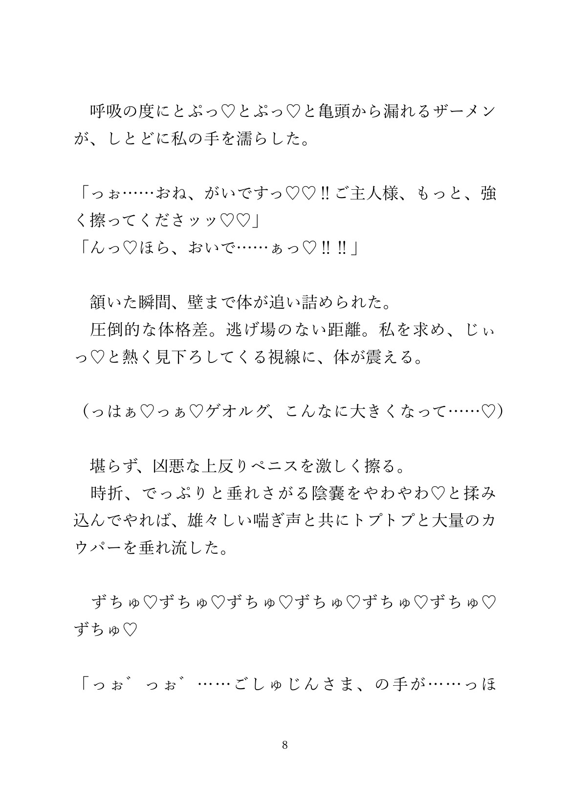 ご主人様のむっちりボディを、奴○の青年が服の上からくまなく撫でまわし、最終的には着衣のまま子宮に大量種付けしてます。