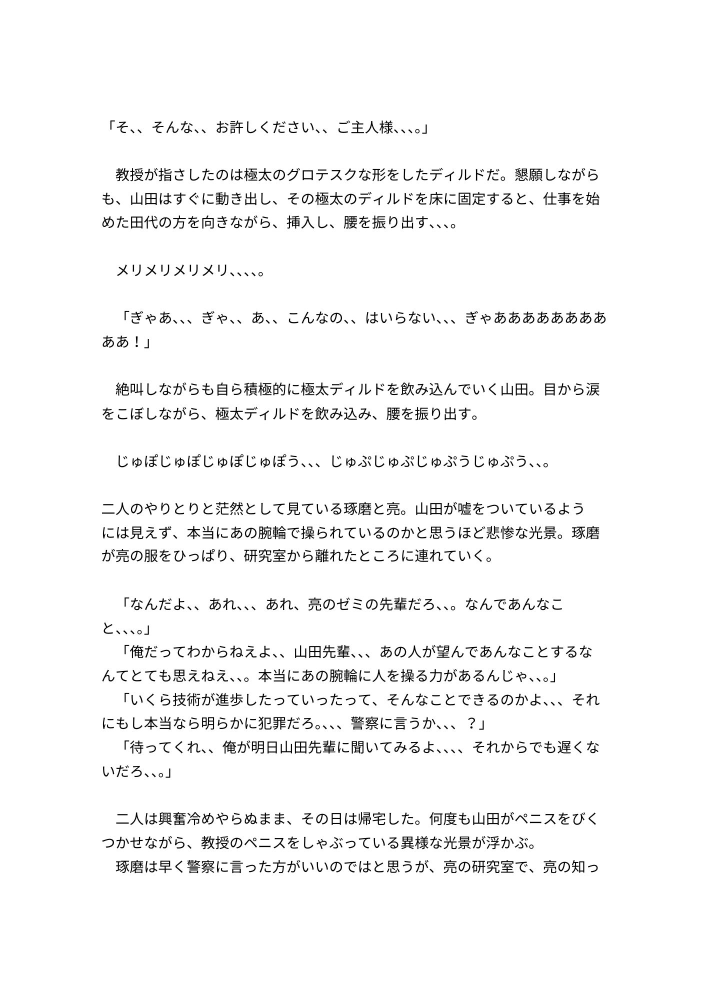 20xx年。人間を自由にコントロールできる腕輪を使い、大学教授が学生たちを私利私欲のために奴〇にしていく、、、。