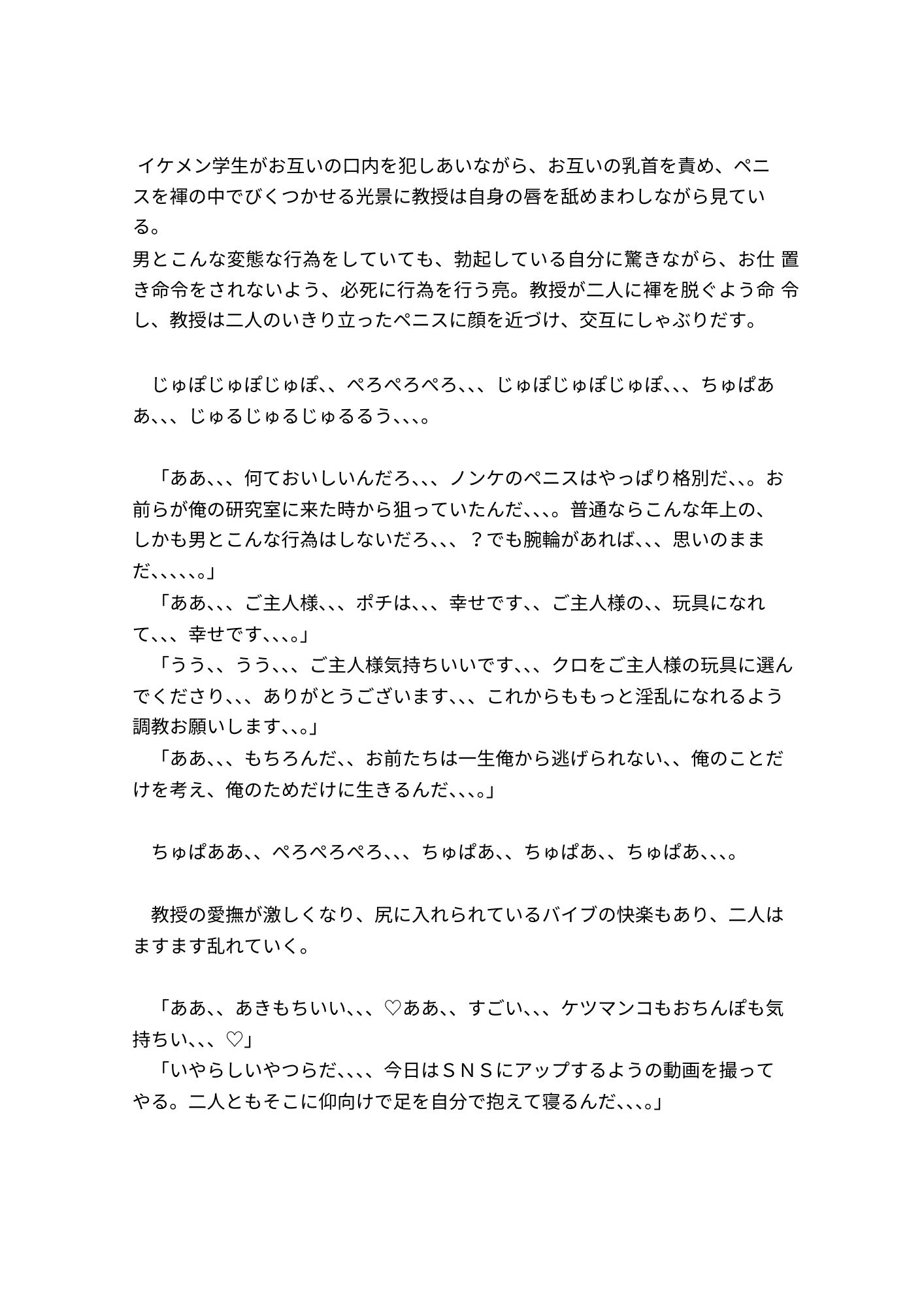 ノンケ大学生が人を操る腕輪をつけられ、無理やり奴〇にされてしまうお話です。調教、羞恥、屈辱メイン。