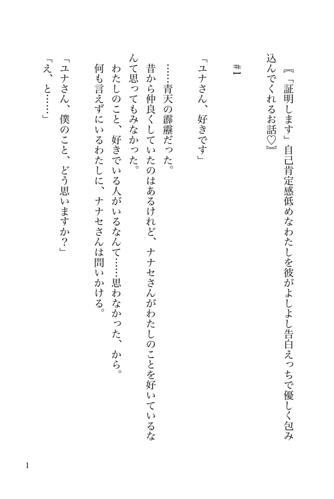 ナナセから告白をされたユナ。自己肯定感が低めなユナが戸惑っていると、ナナセはユナを包み込んでくれて……。