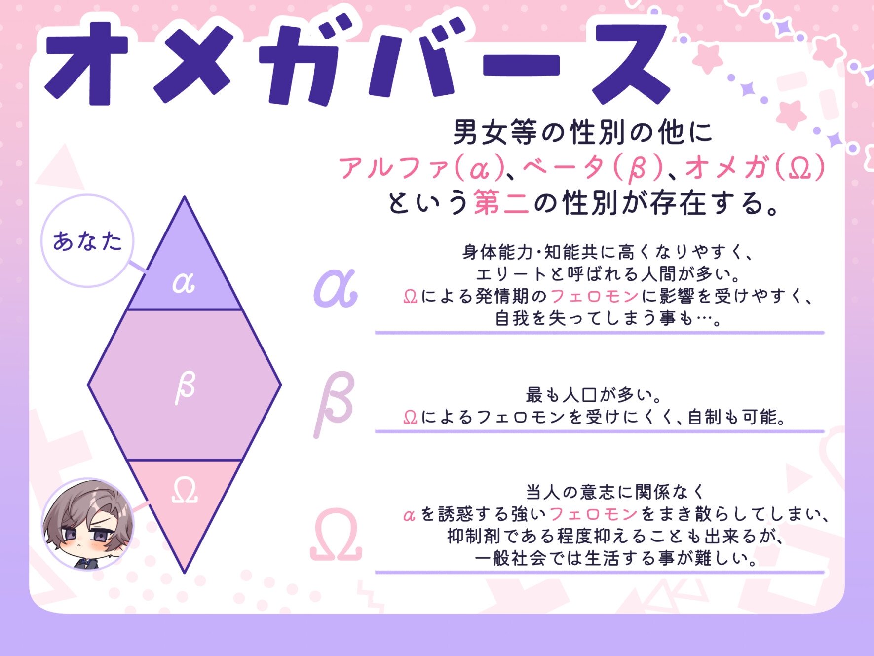 | ジャンル: | 淫語 / 逆転無し / 同級生/同僚 / オメガバース / 女性優位 / 男性受け / 手コキ / 中出し / |