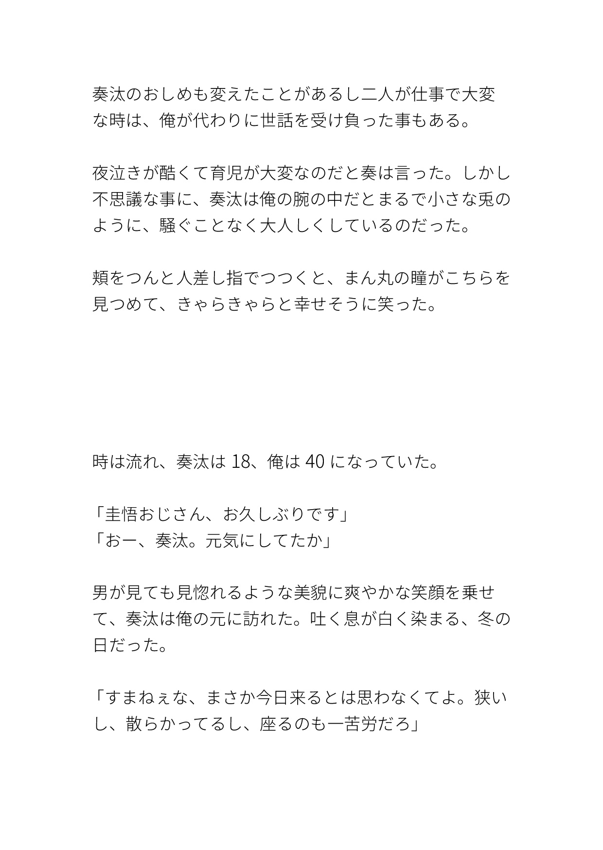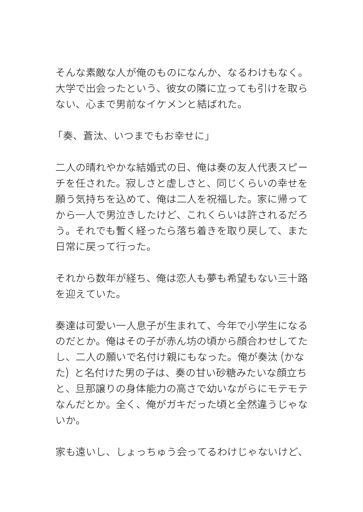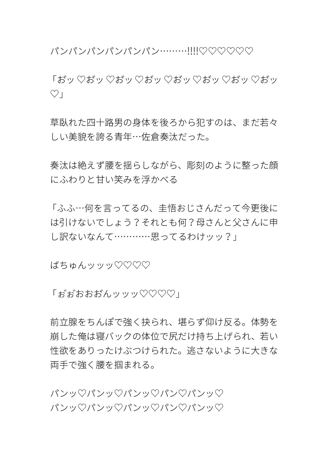 独身平凡社畜サラリーマンが実の子供のように可愛がっていた親友の息子(正統派王子様系イケメン)に18年分の激重執着愛を告白され拒絶したら無理矢理犯された話。攻め→→→→→→→→→受け。無理矢理要素あり。