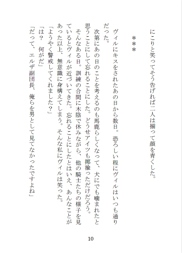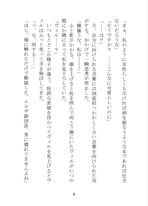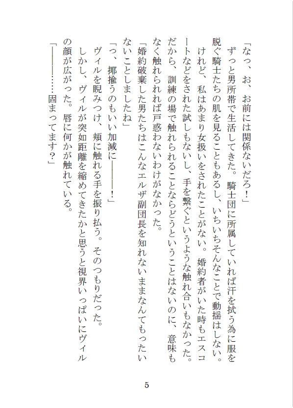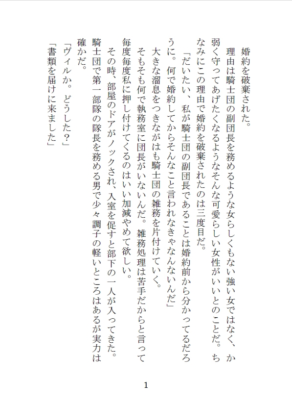婚約破棄をした騎士団の副団長が部下の男に突然キスをされ、体に触れてくる部下に戸惑いつつも少しずつ部下への感情が変わっていくお話。