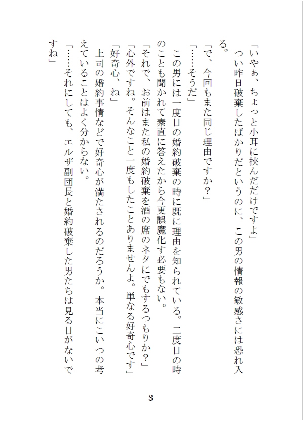 騎士団の副団長を務めるエルザはある日、三度目になる婚約破棄をした。