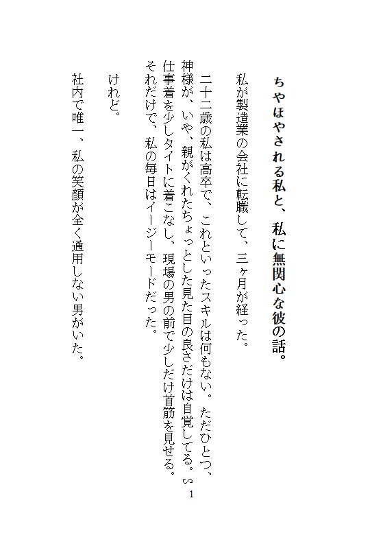 製造業に転職して三ヶ月。高卒でこれといったスキルもない私だけど、親からもらった見た目の良さを武器に、現場の男たちからちやほやさせる毎日。 けれど、システム部の久我さんだけは別だった。 ボサボサ頭に眼鏡の、典型的なシステムオタク。でも、眼鏡の奥に隠れた素顔が、悔しいほどのイケメンであることを、私は知ってしまった。