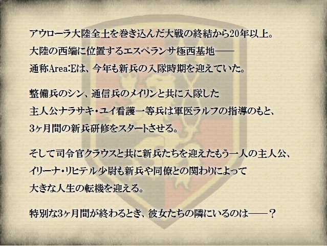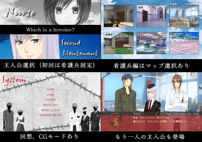 看護兵編はマップ選択&ノベル、少尉編はオーソドックスなノベル形式です。