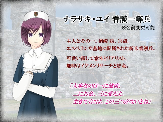 初回プレイ時は看護兵固定、2周目から少尉も選択可能です。