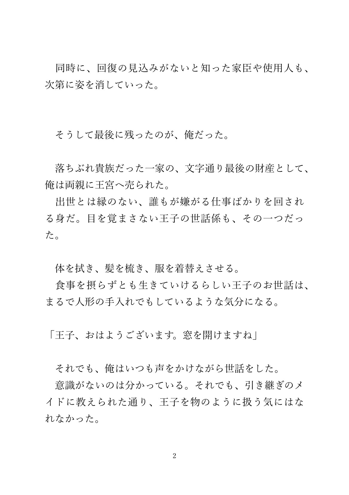 呪いで眠り続けていた孤独な王子の世話係になった心優しいお世話係の青年が、目覚めた王子に変態的なまでに溺愛され、永久にちんぽをハメ続けられる話。