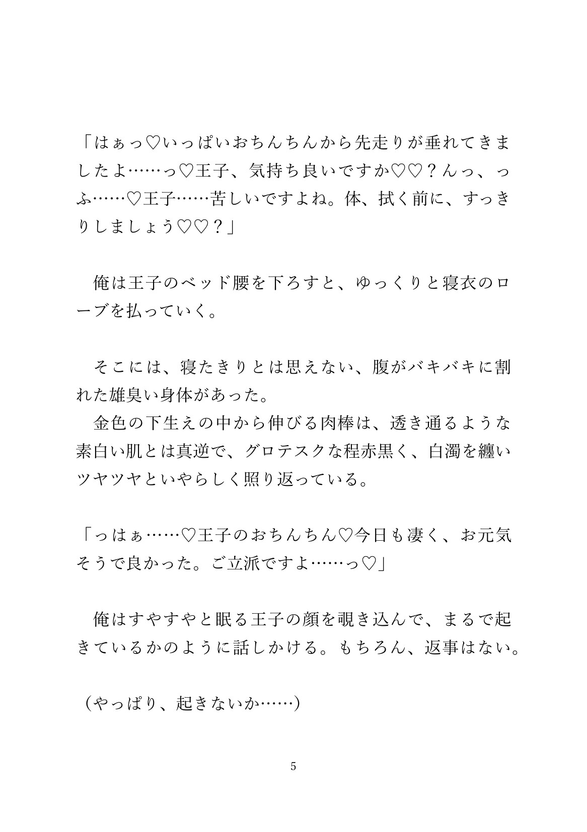 呪いで眠り続けていた孤独な王子の世話係になった心優しいお世話係の青年が、目覚めた王子に変態的なまでに溺愛され、永久にちんぽをハメられ続けられる話。