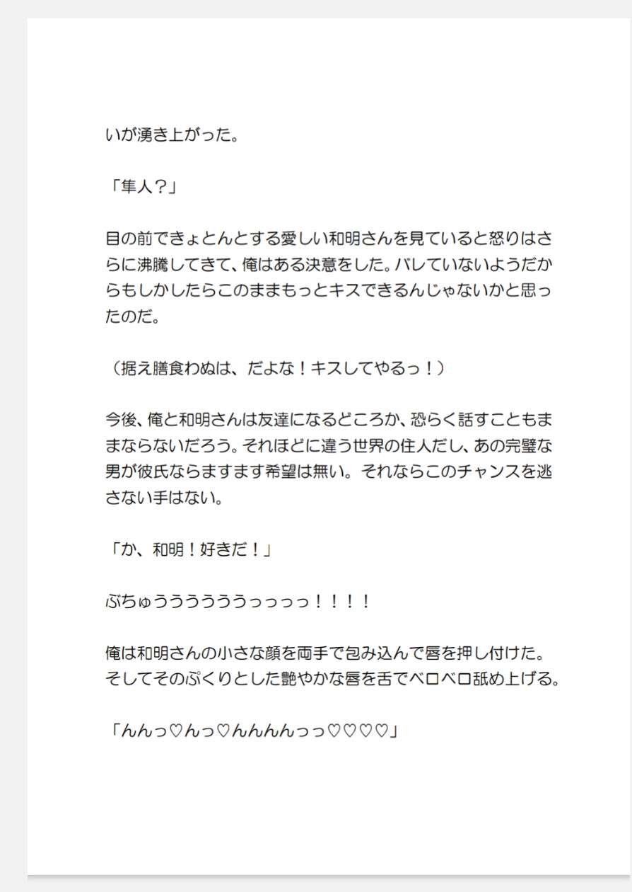 FANBOXで、美青年がおっさんや老人、キモ男などに騙されたり言いくるめられてエッチなことをされてしまうモブ○の官能小説を書いています。