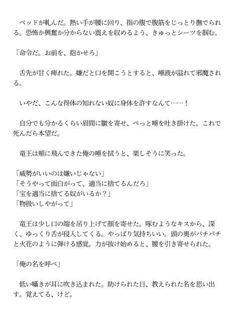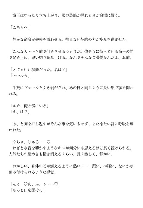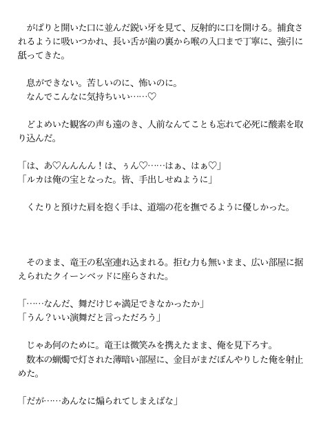 孤児として生き延び、踊りで日銭を稼いでいたカントボーイ少年・ルカ。 ある日、竜王アシュレイに助けられ、絶対服従の「契約印」を刻まれてしまう。 豪奢な館に囚われたかと思えば、公衆の面前でキスされて――。