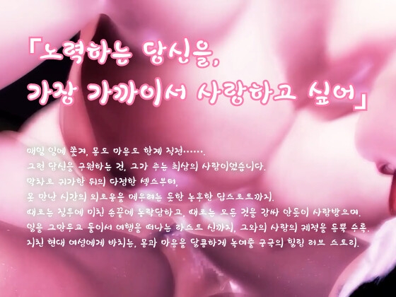 정말 고생 많았어'―― 팽팽했던 신경을 풀어주는 건, 그의 봉사. 피로가 쾌감으로 바뀌는 마법 같은 혀놀림과, 달콤한 애무.