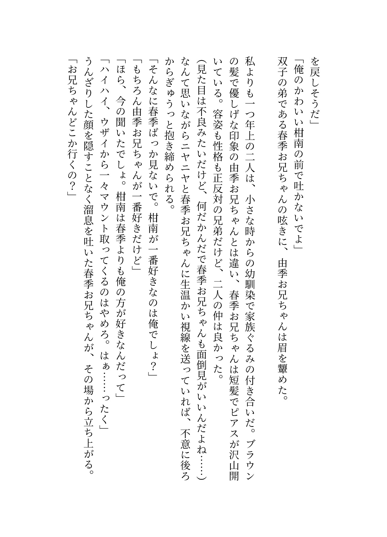 保坂柑南には幼馴染のお兄ちゃんが2人いる。扱いは雑だけど何だかんだで可愛がってくれる春季お兄ちゃんと、甘やかしてお姫様扱いしてくれる由希お兄ちゃん。