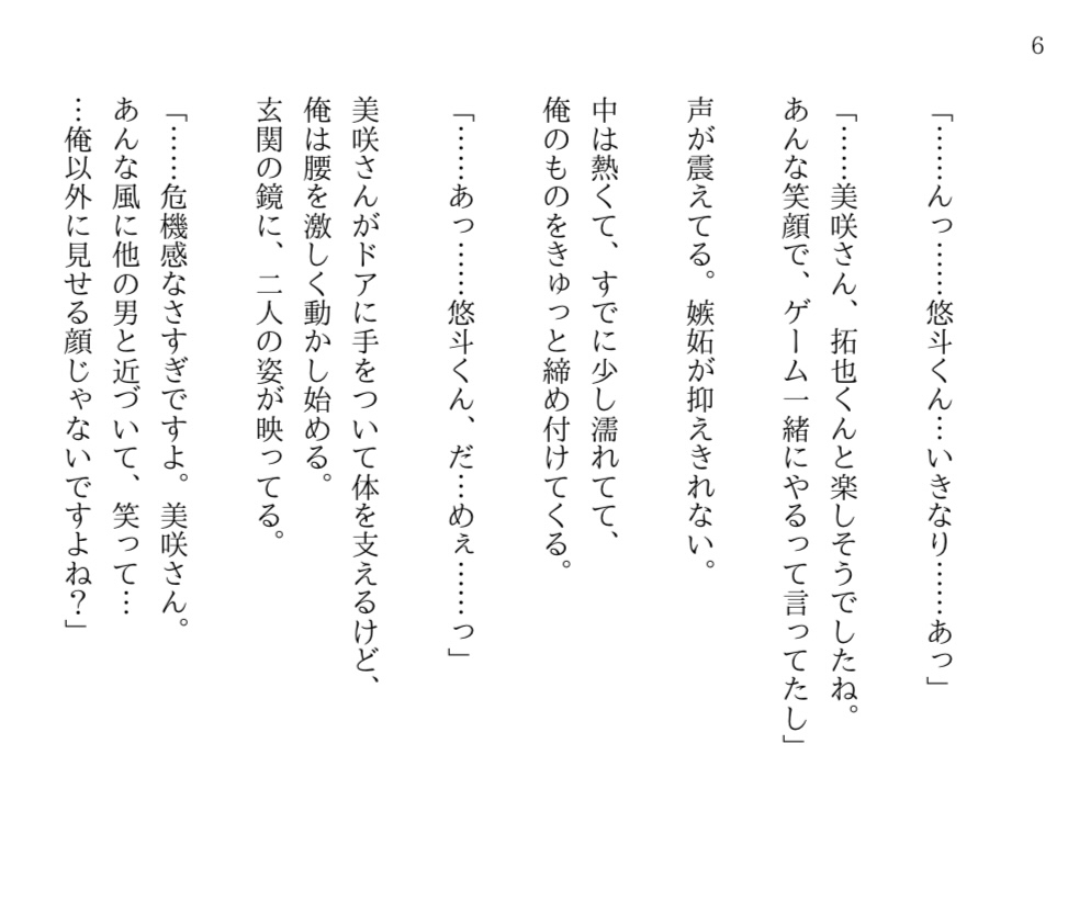 コンビニバイトの年下後輩・悠斗と、30歳既婚者の先輩・美咲。 ゲーム好きの共通点から始まった関係は、やがて一線を越えてしまった。ある日、他の大学生バイトの拓也と楽しそうに話す美咲を見かけた悠斗は、嫉妬で美咲を壊してしまう。