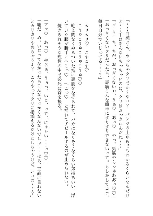 「白瀬さん、パンツの上からクリちょっと撫でられたくらいでイきそうなんだ……よっわ♡」
