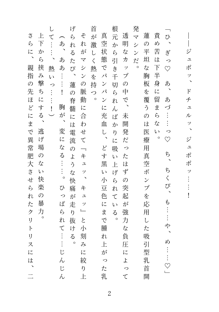 二人と機械の責めにより、神宮寺家の愛玩人形へと作り変えられていく――。