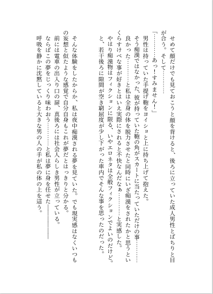 ジャンル:女主人公 / 電車 / 命令/無理矢理 / 秘密さわさわ / 手コキ / 処女 /