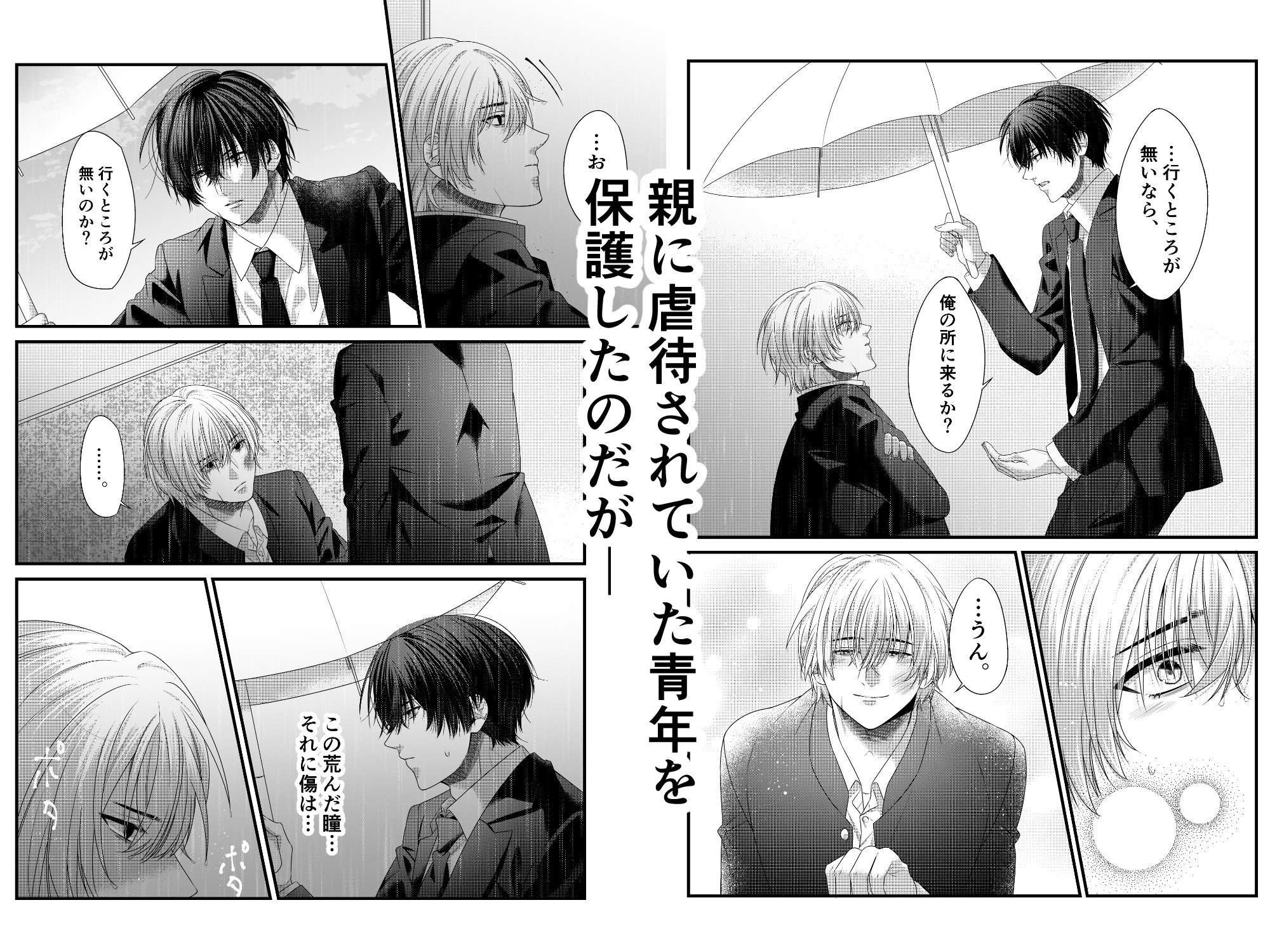 主人公の麗司は雨の中で蹲っていた青年、諒太を過去の自分と重ねてしまい保護することに。