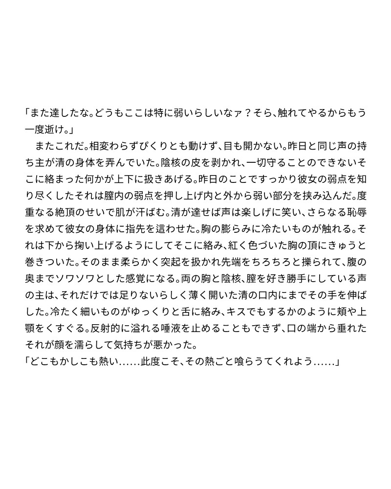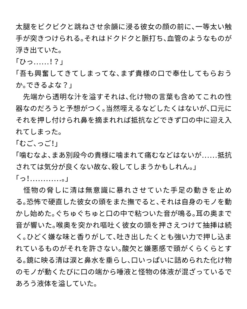 ジャンル:人外 / ホラー / 命令/無理矢理 / 執着攻め / 触手 / 乳首責め / 中出し / 尿道 /