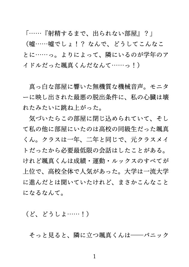 出口のドアに刻まれたのは、『射精しないと出られない部屋』というルール。
