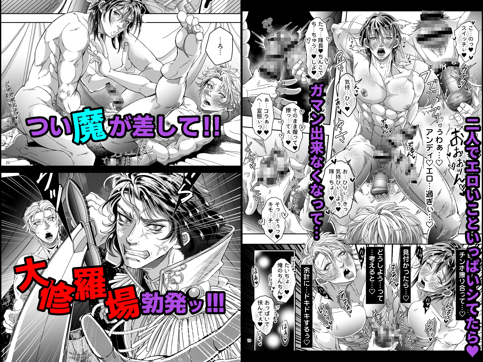 可愛い部下からの誘いを断り切れない優柔不断な隊長ユリウスと、大好きな隊長を前にすっかり雄の本能を取り戻したアンディ。二人でこっそり楽しむつもりがどんどん行為はエスカレートして…。とうとう『挿れたい』と言い出してしまうアンディ!オモチャで散々弄られたユリウスの躰はすっかり蕩けてもう他の男のペニスを拒めない。ユリウスの肛門に押し当てられたアンディの先端がメリッと鈍い音を立てて熱い内部に押し入っていく…