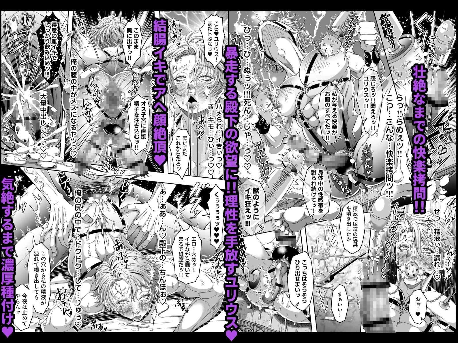 猿轡に拘束具、目隠し状態で乳首クリップに尿道バイブ…。王子の放つ催淫臭に強○発情させられながら異常なまでの快楽○問を受けるユリウスは、止まない性器への刺激と終わらない連続絶頂に次第に正気を手放していく…