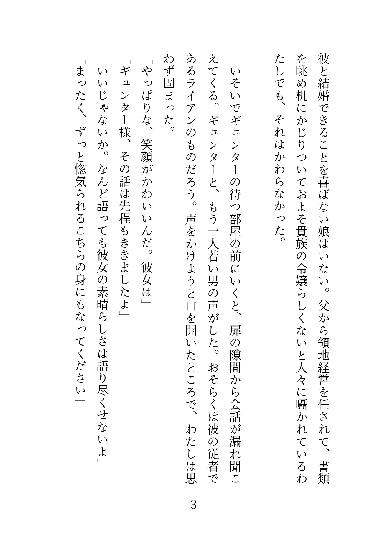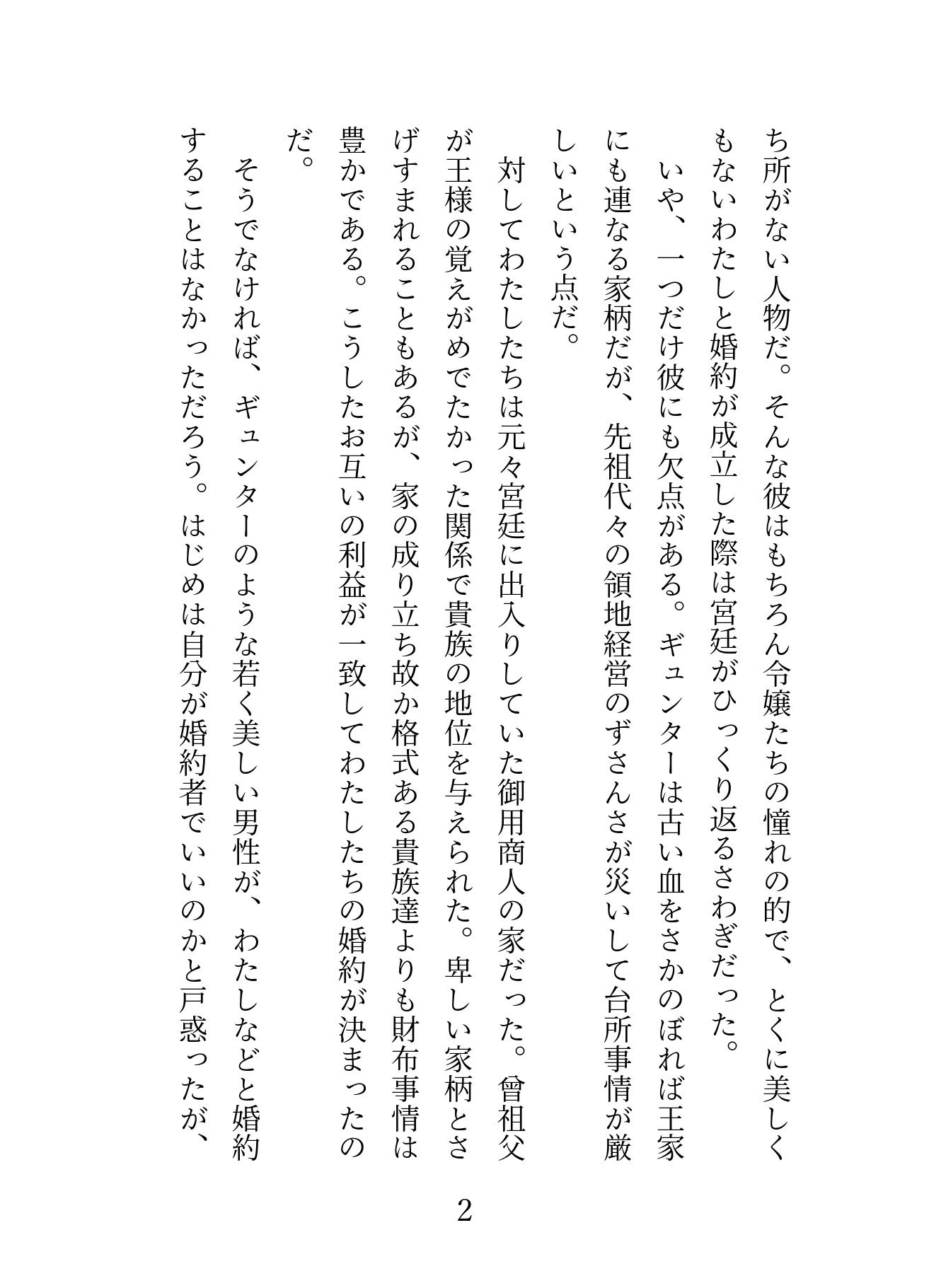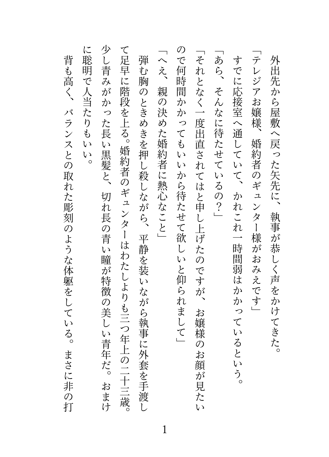 ギュンターとは親同士が決めた婚約者であるが、彼は今までの婚約者とはテレジアの話を笑顔で聞いてくれるため気が付いたら好きになっていた。