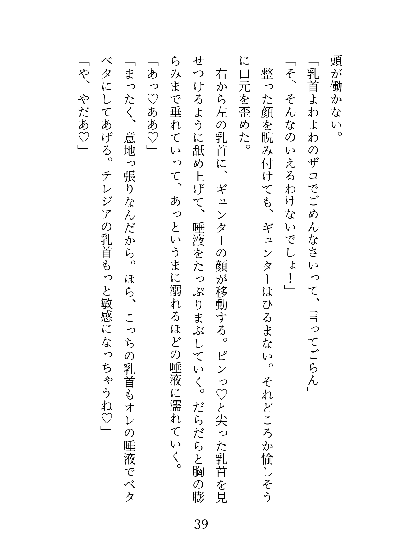 今までの婚約者のようにギュンターも妹のサーラのことが好きなんだと思い込んでしまう。婚前とはいえ一度身体を重ねれば簡単に婚約を破談にできないだろうと踏んだテレジアは、貴婦人の間で噂になっている媚薬をギュンターのワインに仕込むがすぐにバレてしまい……