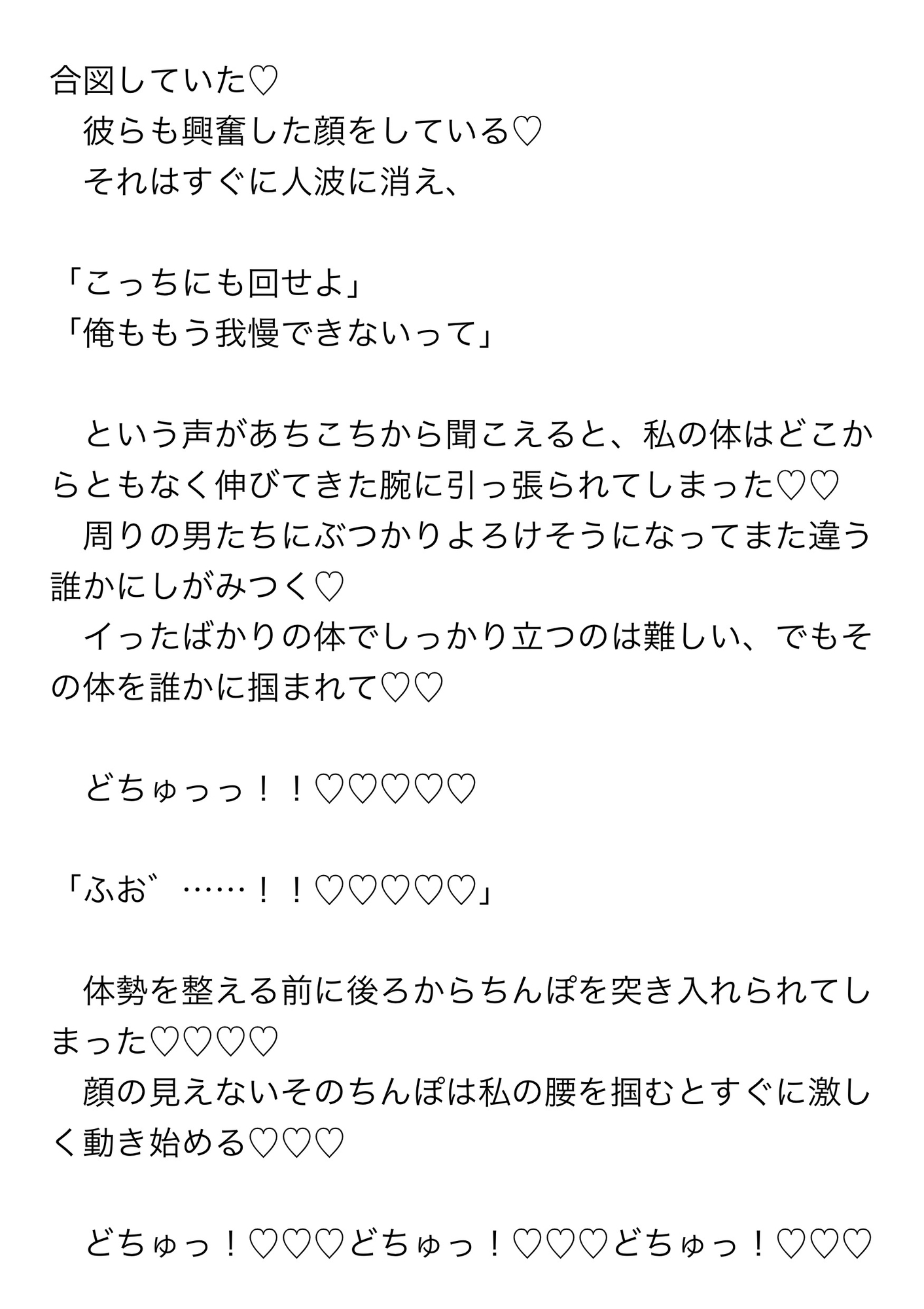「私」はその男性たちにもみくちゃにされながら彼らに「満員電車」のシチュエーションを作られてしまった。