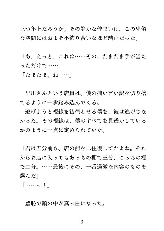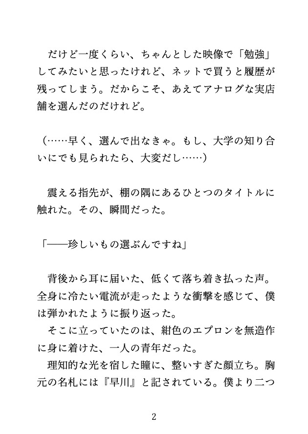 人目を避けて選んだはずなのに、無口で理知的な店員・京介に目を付けられる。