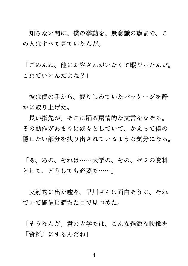 半ば強引にバックヤードへ連れ込まれ、「資料確認」という名目で、彩翔は逃げ場のない状況に追い込まれて――。