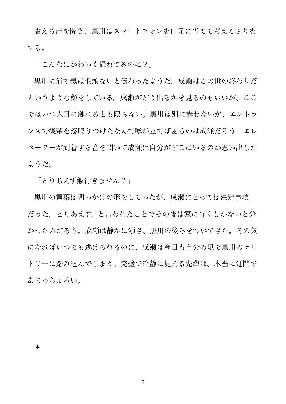 服を脱がせないままずーっと前戯だけ、本番描写はありません(暗転)