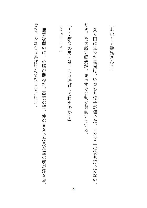大学入学を期に、お母さんと都会を離れて、夢見たのは穏やかな田舎暮らし。けれど、一つ屋根の下にいたのは、底知れない性欲を隠し持った義兄だった。雨がすべてをかき消す午後。不器用な私の隙をついた、義兄が牙を剥く。初めての痛み、無理やり広げられる境界線。処女を散らされた絶望は、激しいピストンによって、次第にドロドロの快楽へと書き換えられていく……。