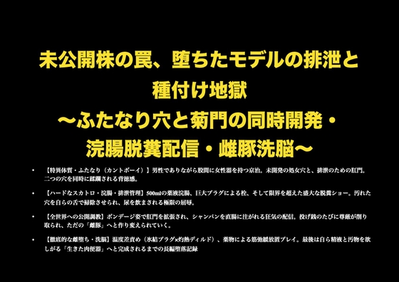 未公開株の罠、堕ちたモデルの排泄と種付け地獄 ~ふたなり穴と菊門の同時開発・浣腸脱糞配信・雌豚洗脳~