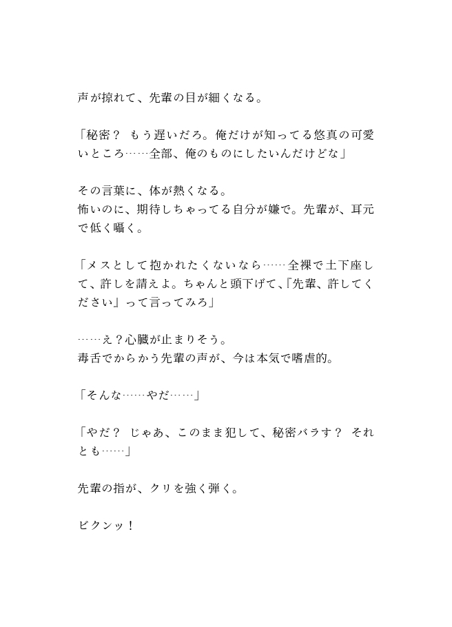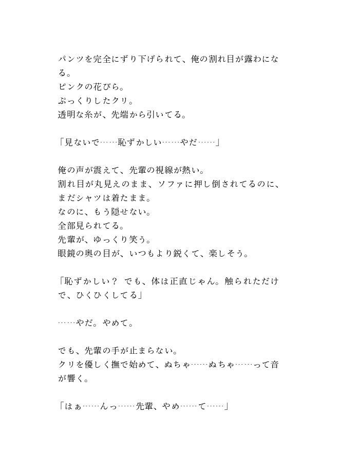 オタク大学生の純情カントボーイが、サークル室で先輩に秘密の割れ目を暴かれ、全裸土下座で許しを請う。