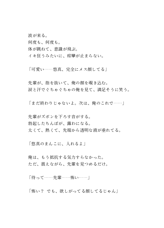 | ジャンル: | 連続絶頂 / クンニ / クリ責め / 言葉責め / 潮吹き / 中出し / メス堕ち / カントボーイ / |