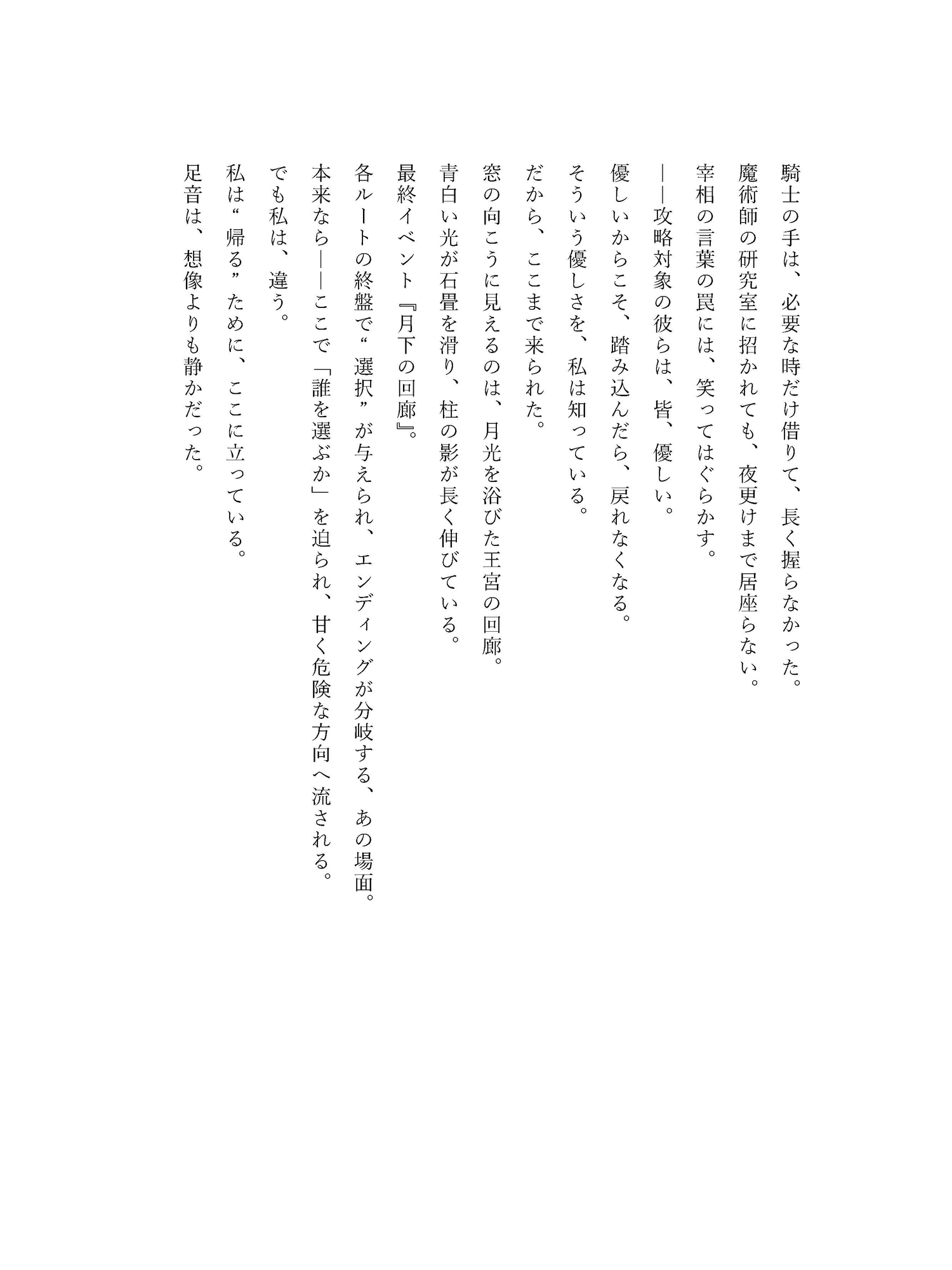 けれど私は“清く正しく”を貫き、誰も傷つけず、誰にも深入りせず、10章分のイベントを完璧に回収して——ついに帰還フラグを立てた。