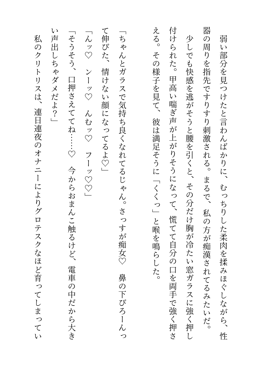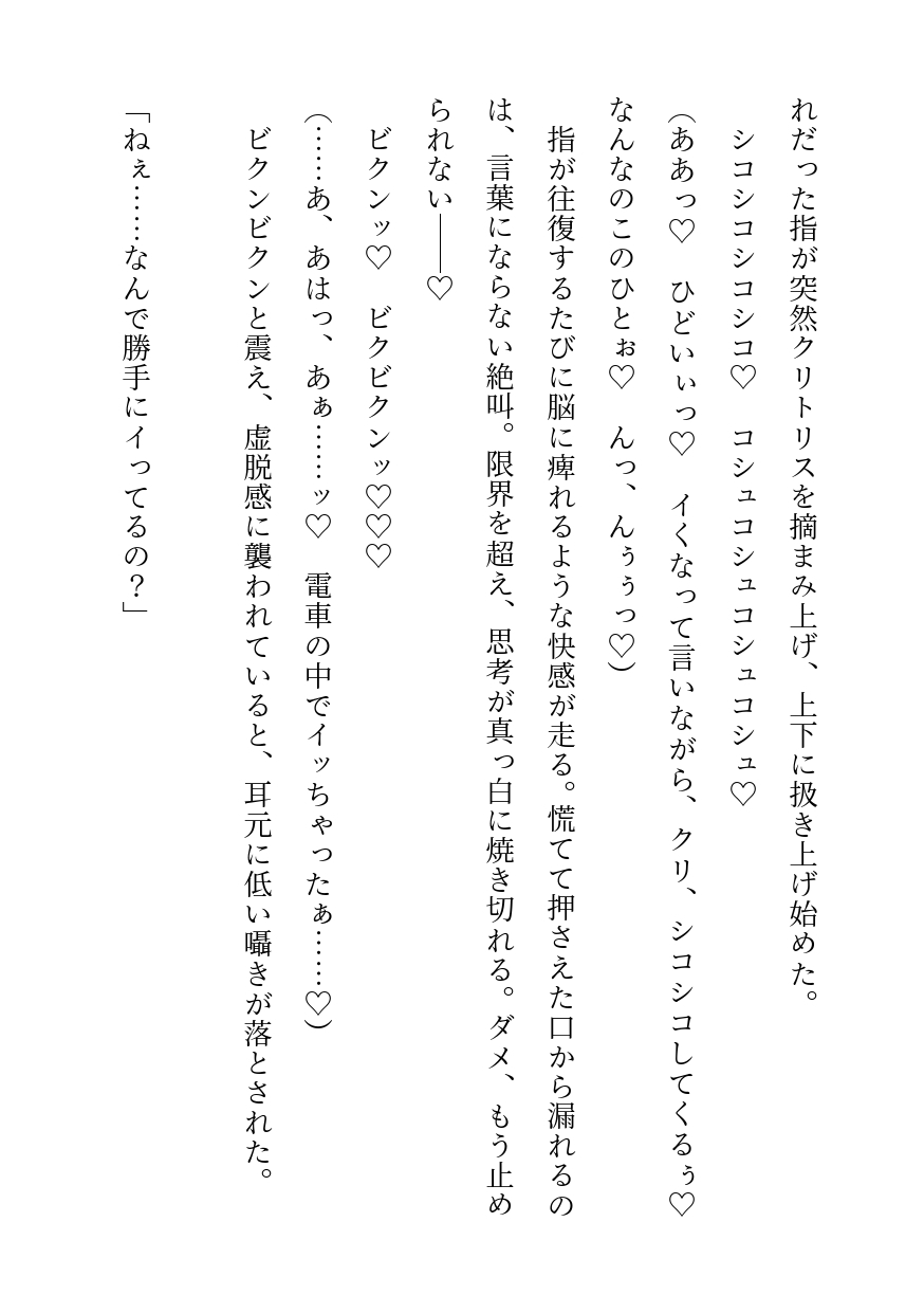 「みなさーん、ここに変態がいまーす♡」電車の中で好みの男性を狙ってわざと体を密着させる行為でストレスを解消していたことがクール系イケメンに全部バレていて、正当防衛という名の手マンと途中下車しての示談という名のぐちゃぐちゃセックスを経て恋人になるお話です。